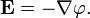 — оператор набла, то есть в правой части равенства стоит минус градиент потенциала — вектор с компонентами, равными частным производным от потенциала по соответствующим (прямоугольным) декартовым координатам, взятый с противоположным знаком.