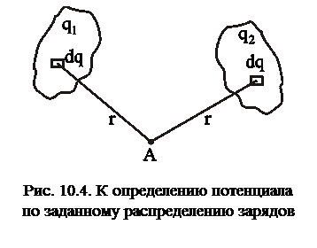 Разбив все распределенные в пространстве заряды на элементарные части dq, будем рассматривать эти элементы как точечные заряды (рис. 10.4).