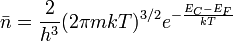 При термодинамическом равновесии, концентрация электронов полупроводника связана с температурой следующим соотношением: