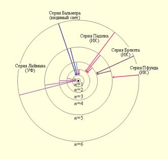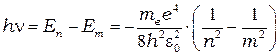 совпадает со значением газокинетических размеров атомов. Так как радиусы стационарных орбит измерить невозможно, необходимо вывести из теории такие величины которые поддаются экспериментальному определению. Такой величиной является энергия, излучаемая или поглощаемая атомами водорода.