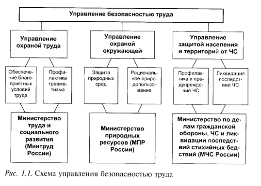 Обеспечение безопасности труда обусловлено правильностью и своевременностью принимаемых управленческих решений в масштабах страны, отраслей, отдельных предприятий и организаций. Управление безопасностью труда ведется по трем самостоятельным направлениям, каждое из которых имеет свою правовую (законодательную), нормативную и организационную основу, свои руководящие и контролирующие органы.