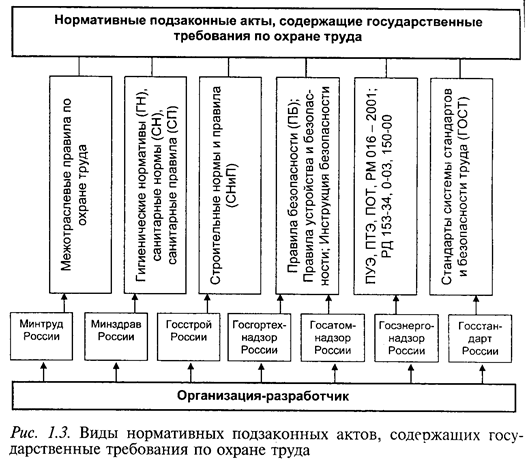 Нормативные подзаконные акты по охране труда включают в себя документацию целого ряда ведомств (рис. 2.3).