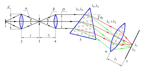 Рис. 2. Оптическая схема призменного спектрального прибора: