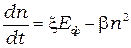 - коэффициент пропорциональности, зависящий не только от свойств полупроводника, но и от частоты или спектрального состава падающего света. Скорость рекомбинации носителей, как и раньше, определяется соотношением (12). В результате получаем: