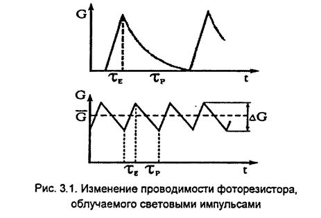 Если освещать фоторезистор импульсным светом, то проводимость его будет изменяться так, как показано на рис. 3.1.
