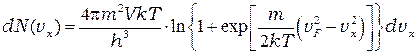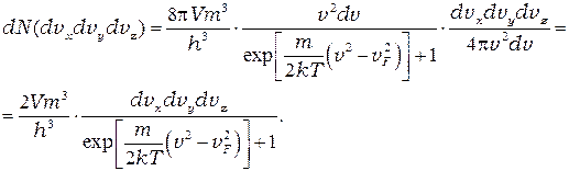 Отсюда получим число электронов, попадающих за единицу времени на единичную площадь, скорость которых лежит в диапазоне от