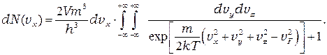 Для того чтобы получить распределение электронов по одной компоненте скорости, проинтегрируем полученное выражение по