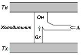 Рис. 2.9. Схема работы теплового двигателя (а) и холодильника (б)