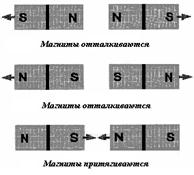 Рис. 3.13. Взаимодействие полюсов магнитов