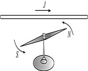 В 1820 году Г.Х. Эрстед27(1777–1851) во время занятий со студентами установил связь электрического и магнитного полей. Он случайно заметил или возможно ему подсказали слушатели, что магнитная стрелка морского компаса, по ко- торому проходили провода, отклоняется от первоначального положения, как только по проводнику потечет ток. Этот факт привел Эрстеда к заключению, что вокруг проводника с то- ком возникает магнитное поле.