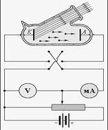 На рис. 4.2, а приведена установка, на которой выполня- лись исследования фотоэффекта. Суть эксперимента заклю- чалась в том, что при попадании на катод световых лучей между катодом и анодом возникал ток. Когда освещение ка- тода светом прекращалось, ток пропадал. Если разность по- тенциалов между анодом и катодом уменьшать, то это также приведет к прекращению тока в цепи. Таким образом, оказа-