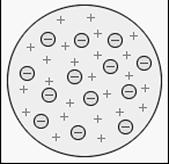 Среди создаваемых в это время моделей атома наиболь- шую популярность приобрела модель Томсона, получившая название «пудинг с изюмом», представленная на рис. 4.4. Согласно этой модели атом представляет собой положитель- но заряженный шар, внутри которого (как изюм в пудинге) располагаются электроны. При попытке согласовать модель с данными спектроскопии и периодической таблицей Менде- леева, Томсон был вынужден включить в состав модели око- ло тысячи электронов. Они располагались по концентриче- ским кольцам и имели каждый свою частоту колебаний.