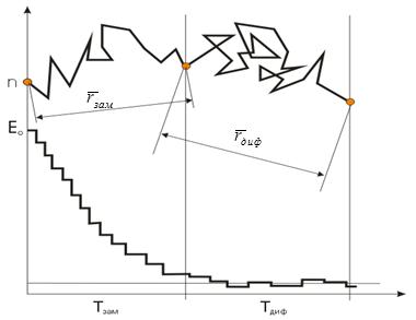 Замедляясь и диффундируя, нейтроны взаимодействуют с ядрами размножающей среды и перемещаются от места рождения. Схема замедления и диффузии нейтронов представлена на рисунке 1.10.