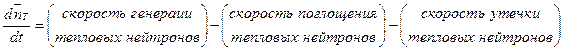 В общем случае скорость генерации тепловых нейтронов может отличаться от скорости поглощения и утечки: