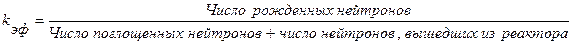 или из уравнения баланса его можно определить, как отношение числа нейтронов, возникших от всех актов деления в единицу времени, к числу всех поглощенных нейтронов в единицу времени и вышедших из реактора:
