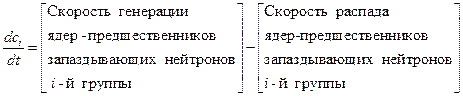 Очевидно, что скорость распада, ядер-предшественников запаздывающих нейтронов i -й группы составляет liсi. Что же касается скорости их генерации, то она может быть определена следующим образом.