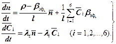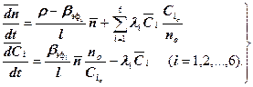 Таким образом, кинетика реактора с учетом шести групп запаздывающих нейтронов описывается системой из семи дифференциальных уравнений при i = l, 2,...,6.