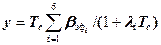 представляет собой дробную функцию, непрерывную во всем диапазоне изменения Те, кроме тех значений Т е, при которых знаменатель обращается в нуль, а числитель остается отличным от нуля. Очевидно, что существует шесть точек разрыва: -1/ l 1; 1/ l 2;…; 1/ l 6. При указанных значениях аргумента функция претерпевает бесконечный разрыв, как показано на рис. 4.1.