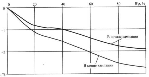 Рис. 6.2. Мощностные эффекты реактивности в начале и конце кампании