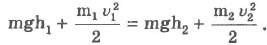 Рассмотрим пример проявления этого закона. Пусть тело, поднятое над Землей, обладает потенциальной энергией Е1 = mgh1 и скоростью v1направленной вниз. В результате свободного падения тело переместилось в точку с высотой h2 (E2 = mgh2), при этом скорость его возросла от v1 до v2. Следовательно, его кинетическая энергия возросла от