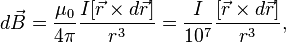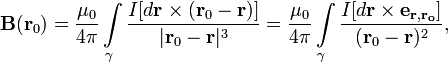 — точка, в которой ищется (наблюдается) поле, тогда индукция магнитного поля в этой точке выражается интегралом (в Международной системе единиц (СИ))