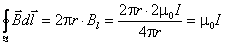 по замкнутому контуру. Начнём с простого контура. Пусть для начала контур совпадает с силовой линией магнитного поля прямолинейного тока (рис. 9.7.). По определению, циркуляция вектора по замкнутому контуру равна следующему интегралу:
