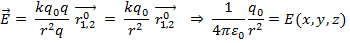 Напряженность электрического поля – это вектор, численно равный отношению силы, действующей на положительный заряд, помещенный в данную точку поля, к заряду: