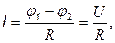 где j1 - j2 = U – разность потенциалов (напряжений) на концах участка цепи; R – сопротивление участка;