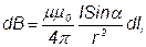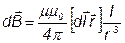 где dB – магнитная индукция поля, создаваемого элементом проводника длиной dl с током I;