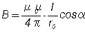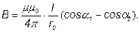 При симметричном расположении концов провода относительно точки, в которой определяется магнитная индукция (рис.1,б), cos