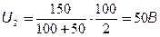 Показание U1 вольтметра, подключенного к точкам А и В (рис.2) определяется по формуле