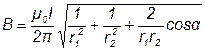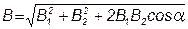Абсолютное значение магнитной индукции В может быть найдено по теореме косинусов: