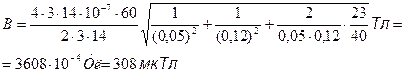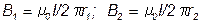 Значение магнитных индукций (здесь и далее, если не указана среда, имеется в виду, что проводник находится в вакууме и, следовательно, m=1),