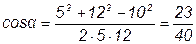 Вычислим cosa. Заметив, что a = ÐDAC (как углы с соответственно перпендикулярными сторонами), по теореме косинусов запишем