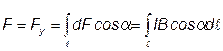 Результирующая сила, действующая на все элементы полукольца, будет определяться силой Fу, так как из соображения симметрии следует