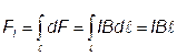 В данном случае угол между dl и B равен p/2 (рис.11) и формулу (1) можно написать в виде dF = IBdℓ. Cилы, действующие на каждый элемент проводника с током, направлены по радиусам полукольца и лежат в одной плоскости. Выбрав координатные оси xy, как показано на рис.11а, найдем проекции сил: