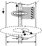 Можно предположить, что в пространстве внутри трубы направления линий индукции аналогичны направлению тока в осевом проводнике. В соответствии с этим выберем направление обхода контуров L1 и L2 так, чтобы оно составляло правовинтовую систему с осевым током I. Тогда во всех точках контура L2 a = 0, где a - угол между