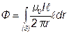 С контуром L2 cцеплен только осевой ток, т.е.