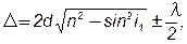 гдк d – толщина пленки; n – показатель преломления пленки; i1 – угол падения; i2 – угол преломления света в пленке.