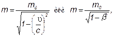где m0 - масса покоя частиц; m – релятивистская масса; u - скорость частицы; с – скорость распространения электромагнитного излучения в вакууме.