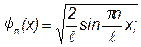 где n – квантовое число (n = 1,2,3,…); l – ширина ящика. В области 0 £ х, x ≥ ℓ, U = ¥ и
