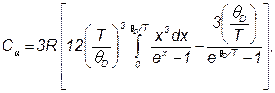 · Молярная теплоемкость кристаллического твердого тела по Дебаю: