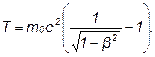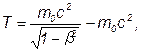 В релятивистской механике кинетическая энергия Т частицы определяется как разность между полной энергией Е и энергией покоя Е0 этой частицы, т.е. Т = Е – Е0. Так как Е = mc2 и Е0 = m0c2, то, учитывая зависимость массы от скорости, получим: