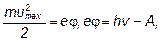 | l = 324 нм Авых=3,74 эВ | Согласно формуле Эйнштейна, максимальная кинетическая энергия вылетевших фотоэлектронов равна разности энергии фотона и работы выхода . |