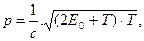 Импульс частицы можно определить, если известна ее кинетическая энергия Т. Связь импульса с кинетической энергией различна для нерелятивистского случая (когда кинетическая энергия частицы много меньше ее энергии покоя) и для релятивистского случая (когда кинетическая энергия сравнима с энергией покоя частицы).