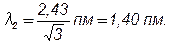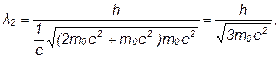 Во втором случае кинетическая энергия Т2 = еU2 = 510 кэВ = 0,51МэВ, т.е. равна энергии покоя электрона. В этом случае необходимо применить релятивистскую формулу (5). Учтя, что Т2 = 0,51 МэВ = m0c2, по формуле (5) найдем