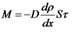 D – коэффициент диффузии, показывает массу, проходящую через единичную поверхность, за единицу времени, при единичном градиенте плотности.