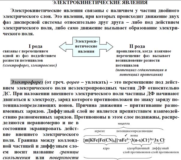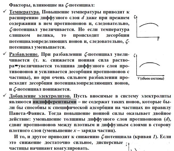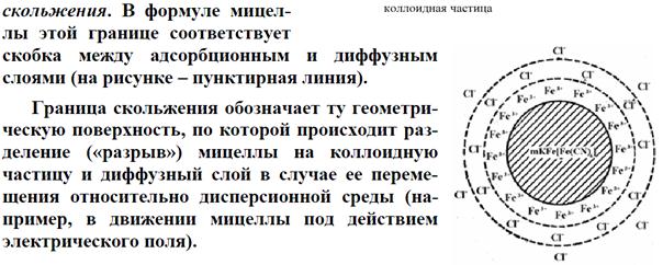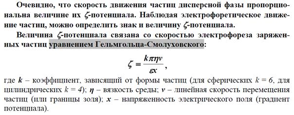 Потенциал двойного слоя, отвечающий границе скольжения при движении дисперсной фазы и дисперсионной среды относительно друг друга, называется электрокинетическим или x-потенциалом (дзета-потенциалом). Место границы скольжения определяется действием адсорбционных и электрических сил, а также свойствами раствора, окружающего частицы, в частности, вязкостью прилегающих слоев жидкости. Граница скольжения может совпадать с границей между адсорбционными и диффузным слоями или находиться несколько дальше от поверхности, где-то в диффузном слое.