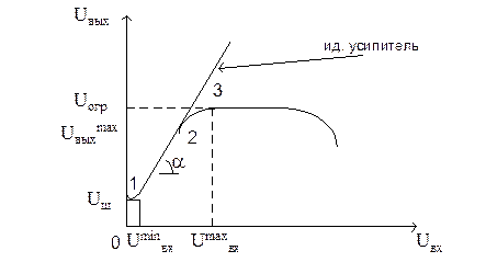 2 – область линейного усиления. Uвх = kuUвх, tga Þ ku