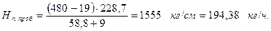 | Марка оборудования | Скорость выпускных органов с учетом технологических режимов | Теоретическая производитель- ность, кг/ч | Кпв | Норма производитель-ности оборудования, кг/ч | Приме-чание |